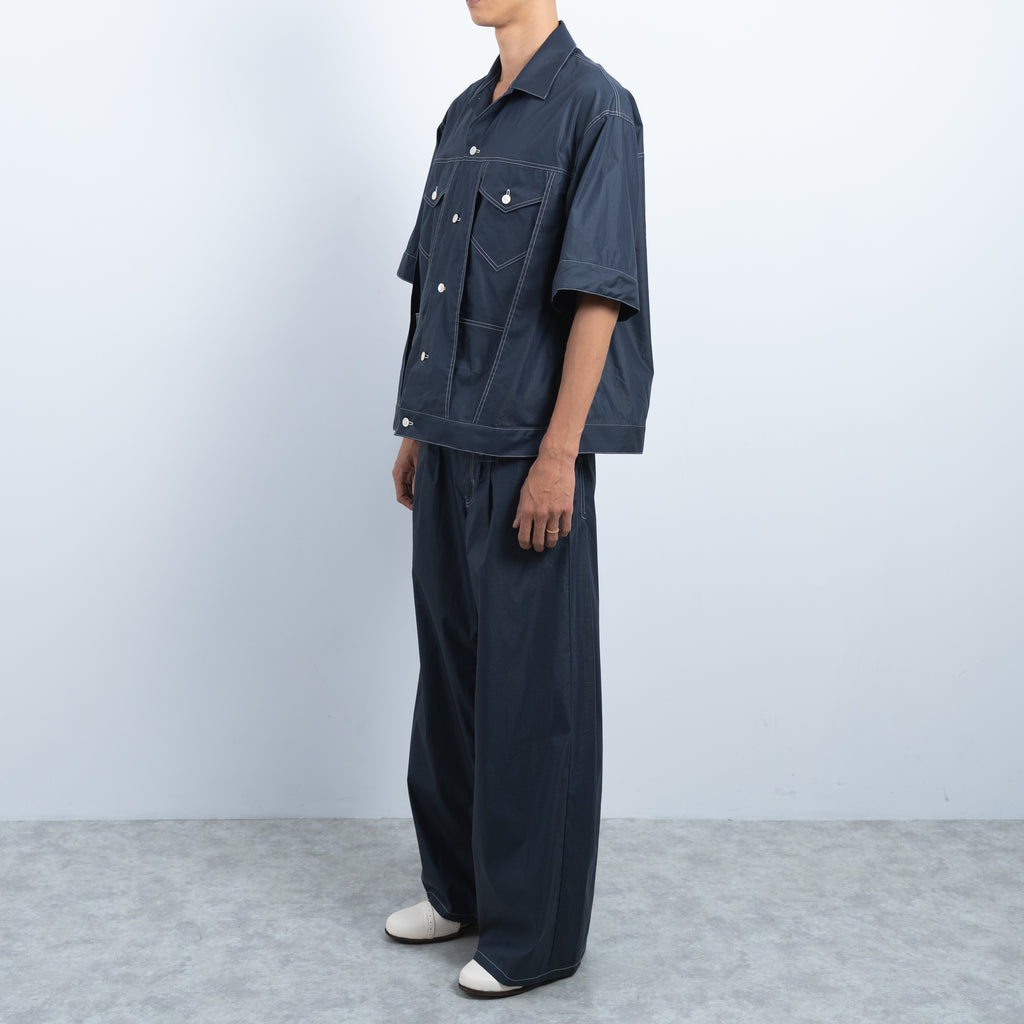 半袖シャツと言いつつも袖丈、着丈共に長さを出し、身幅もそのバランスを保つようたっぷりと仕上げたので半袖シャツに苦手意識を持つ方々にも抵抗なくトライして頂けると考えております。