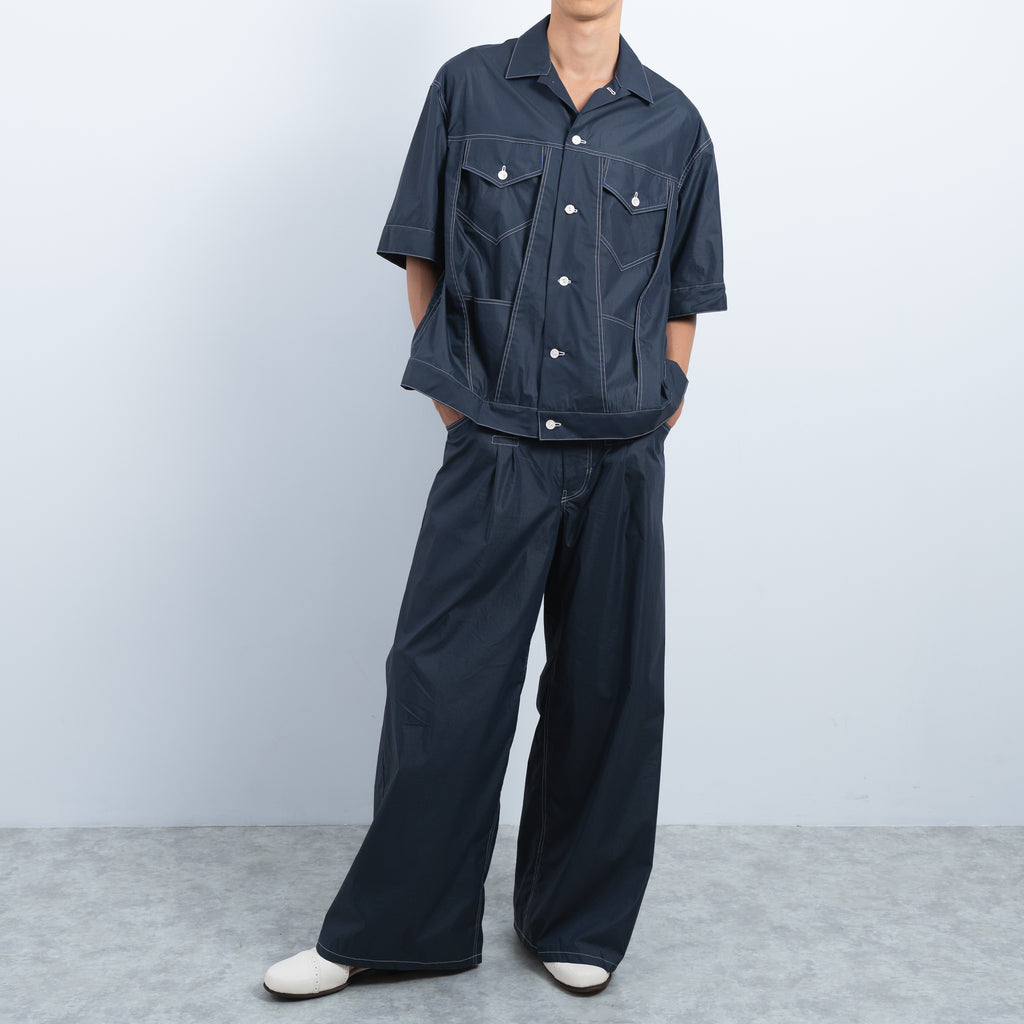 Navy色品番に関しては遠くから見るとよりデニムパンツに見えるよう、白ステッチで仕上げるなど色品番によっても差別化を図る遊びがブランドらしいアイテムです。