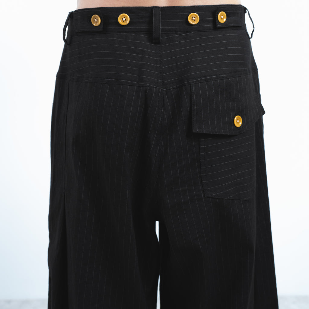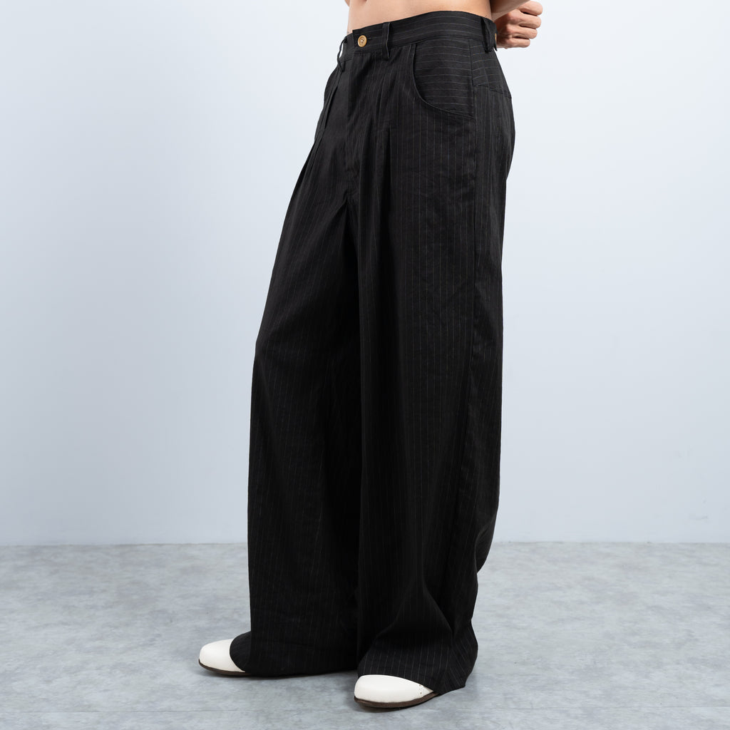 リネンとヴィスコースの交繊素材を採用し、軽さと存在感のあるワイドトラウザーズに仕上げた。